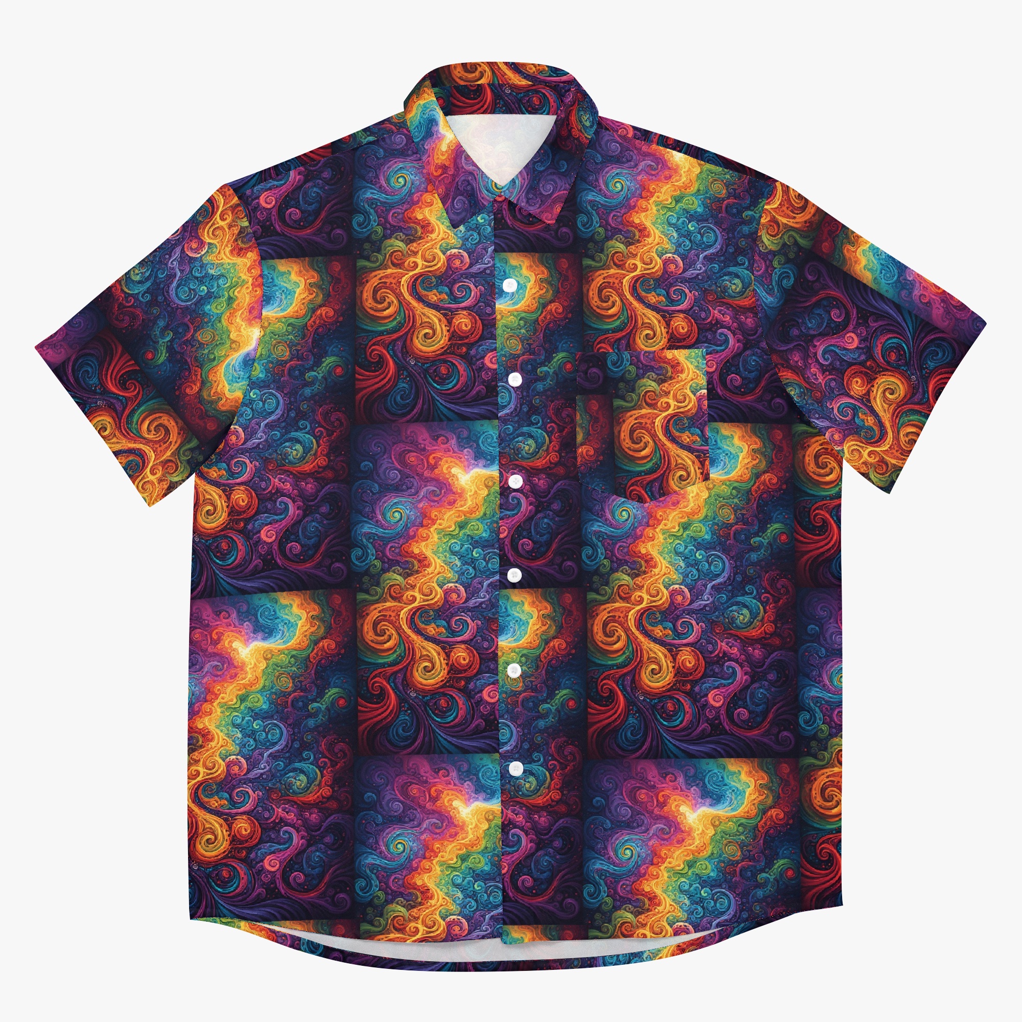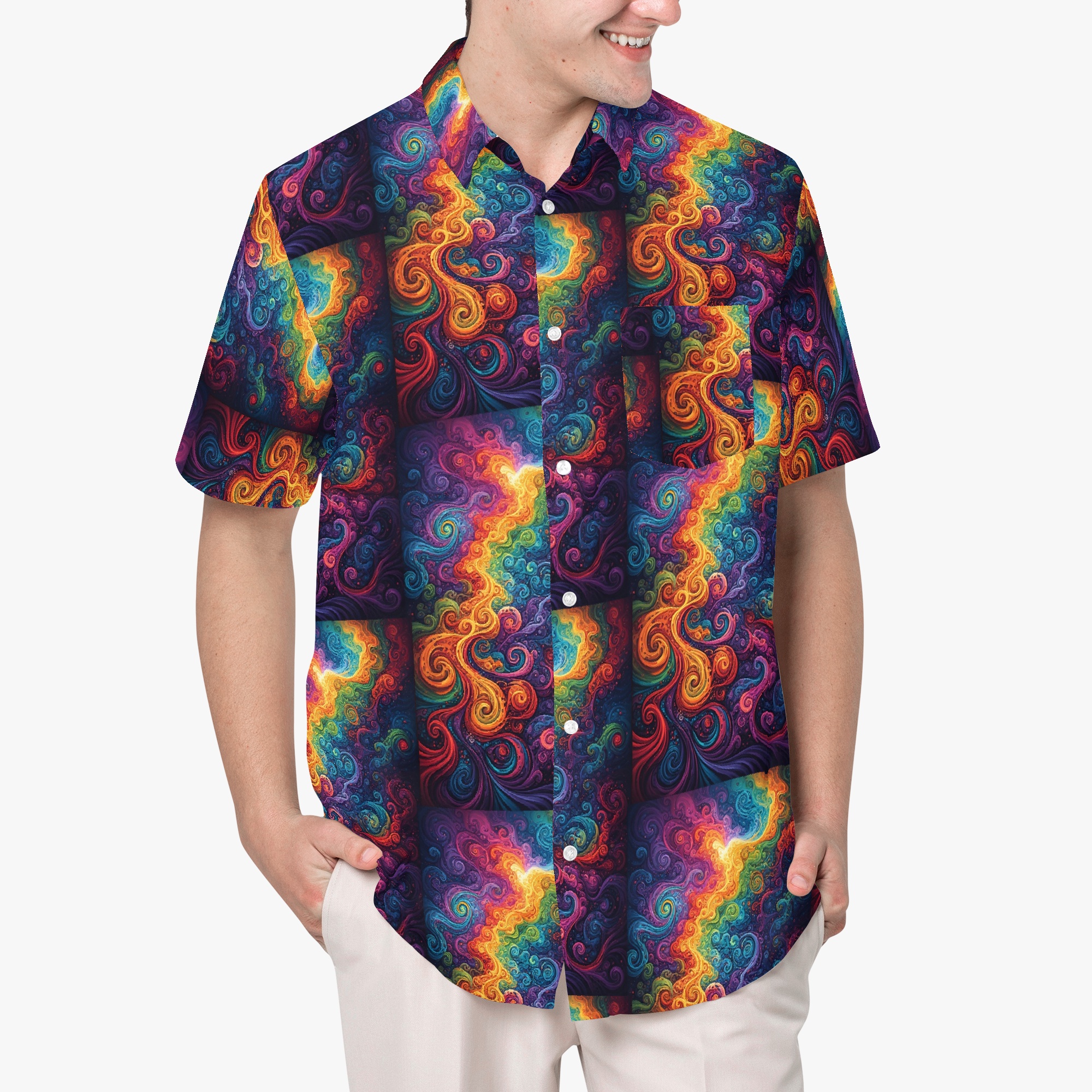 A riot of color. A swirl of chaos. A shirt that doesn’t RSVP… it crashes the scene.
