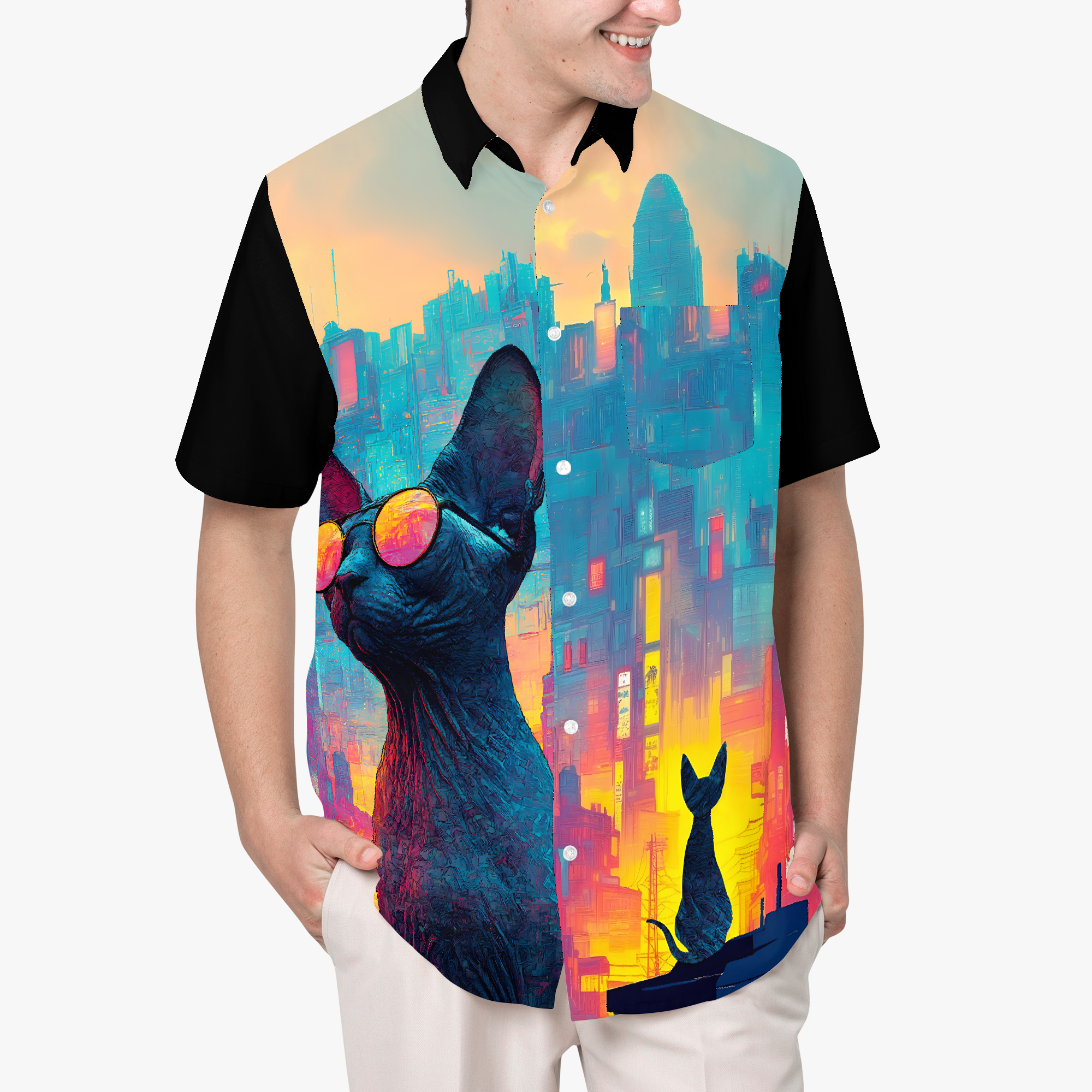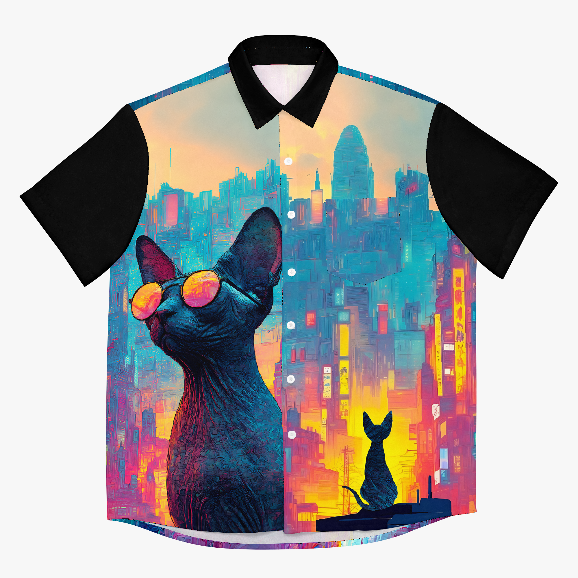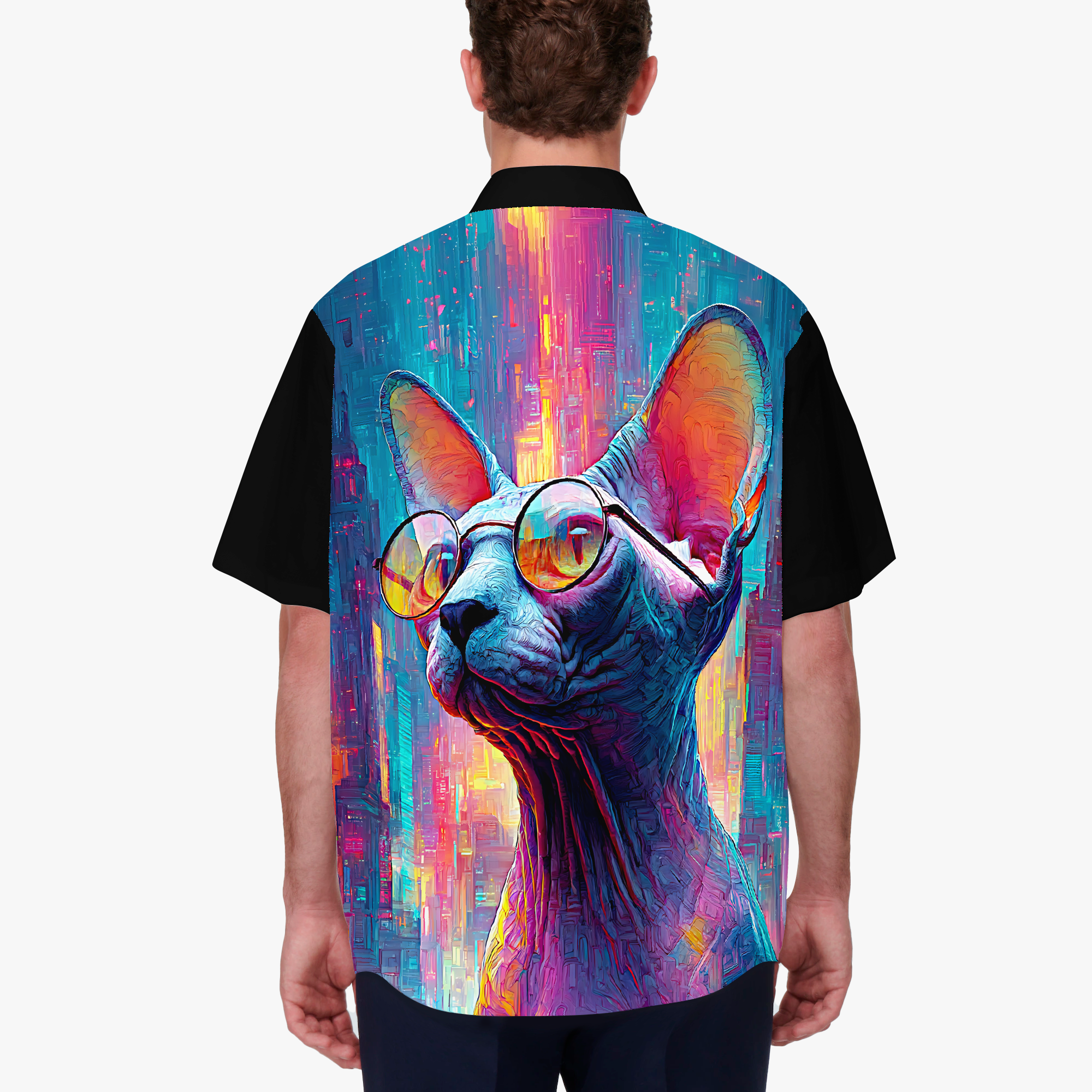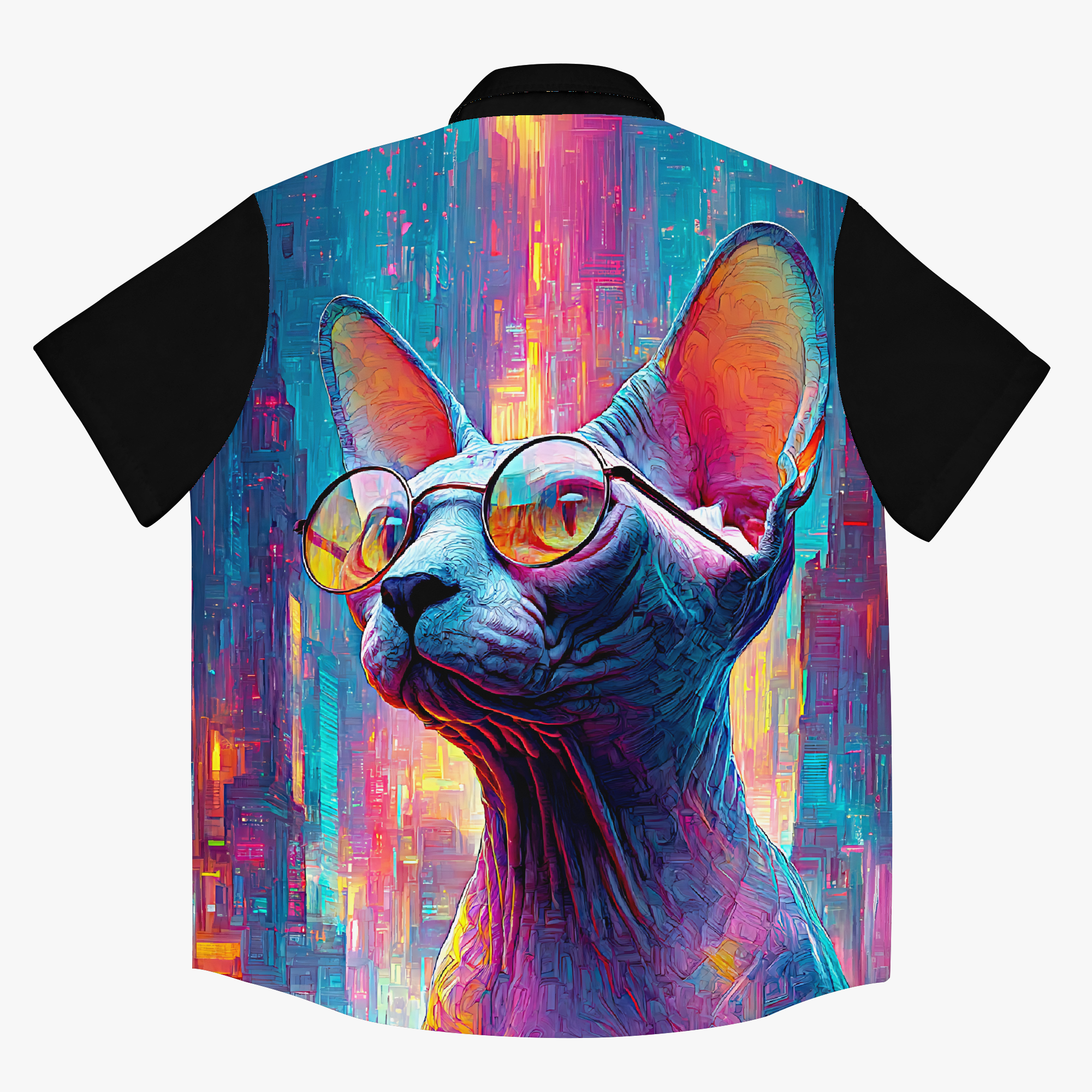 Lights, shades, attitude. This Sphynx doesn’t just walk the neon lit streets of tomorrow, he owns them. With cyberpunk swagger and futuristic flair, “Cool Cat” is your ticket to feline legend status. Bold, vibrant, and always totally chill.