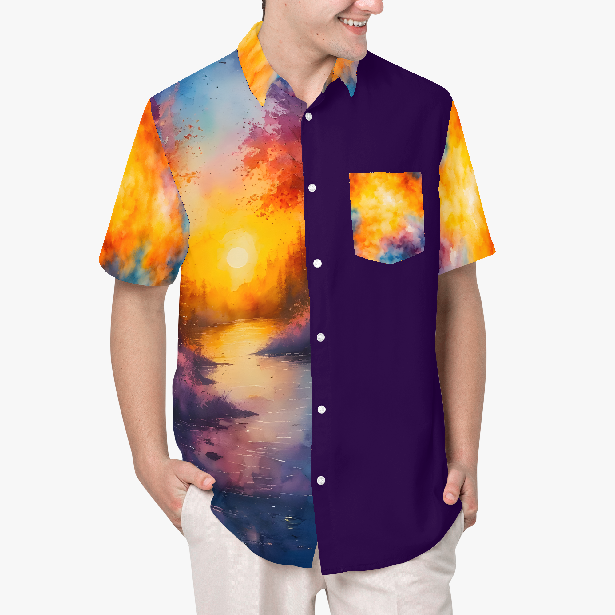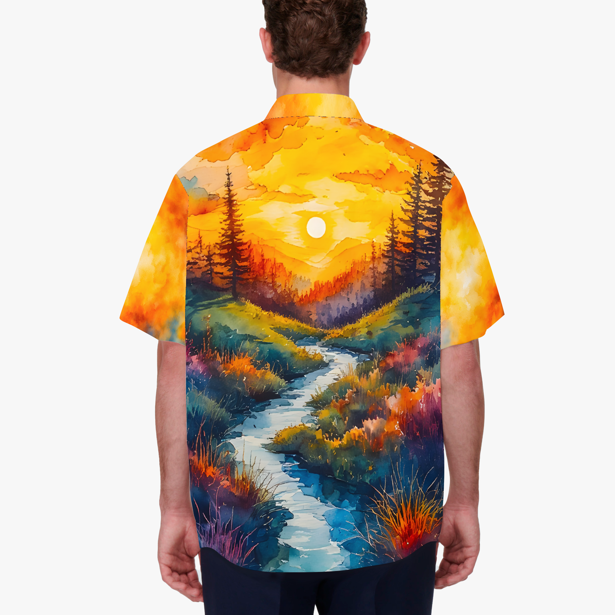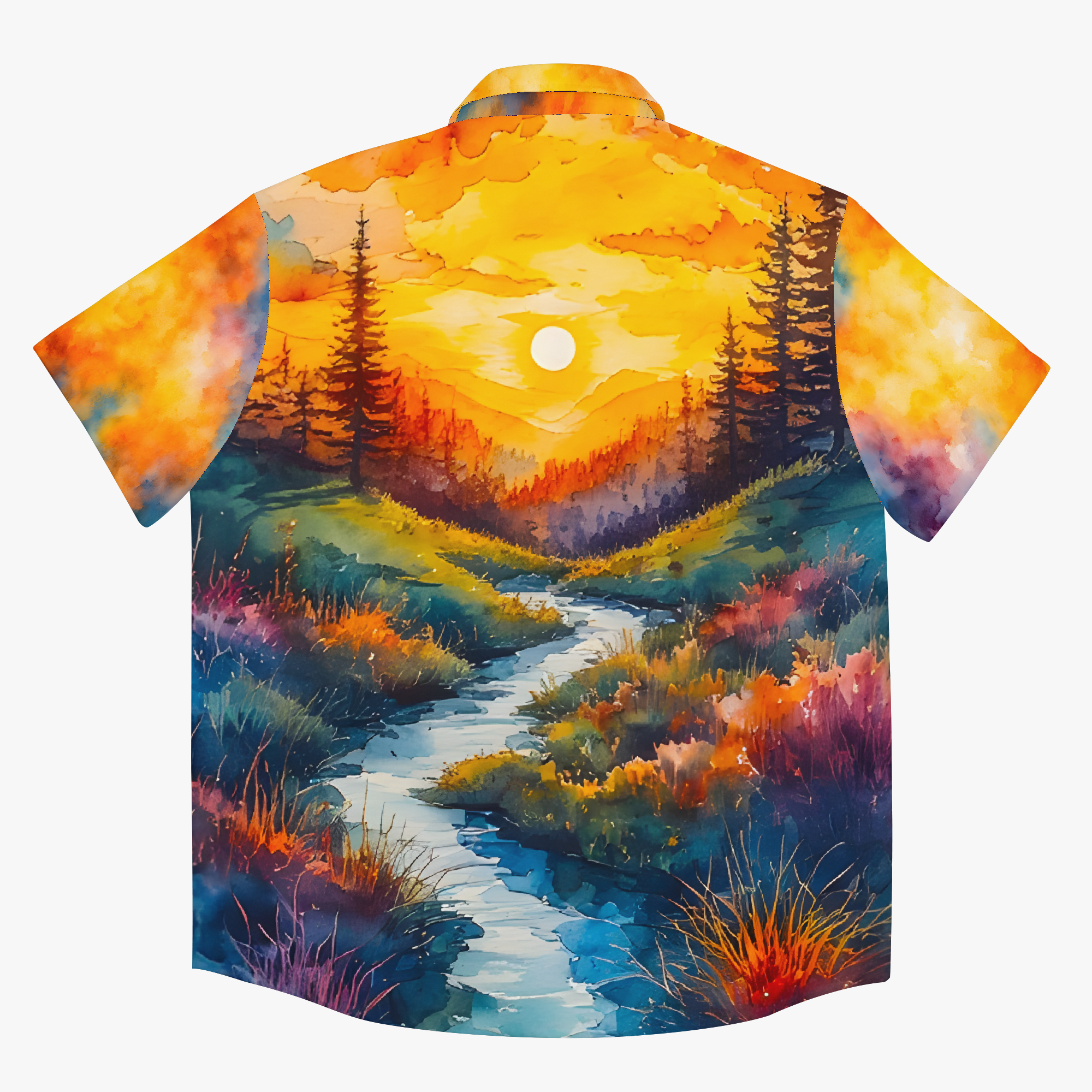 Serenity brings the calm of watercolor landscapes into your wardrobe. Soft gradients, gentle horizons, and natural colors create a sense of quiet balance. This design is a moment suspended in peace. Wrap yourself in the hush of nature’s quiet joy.